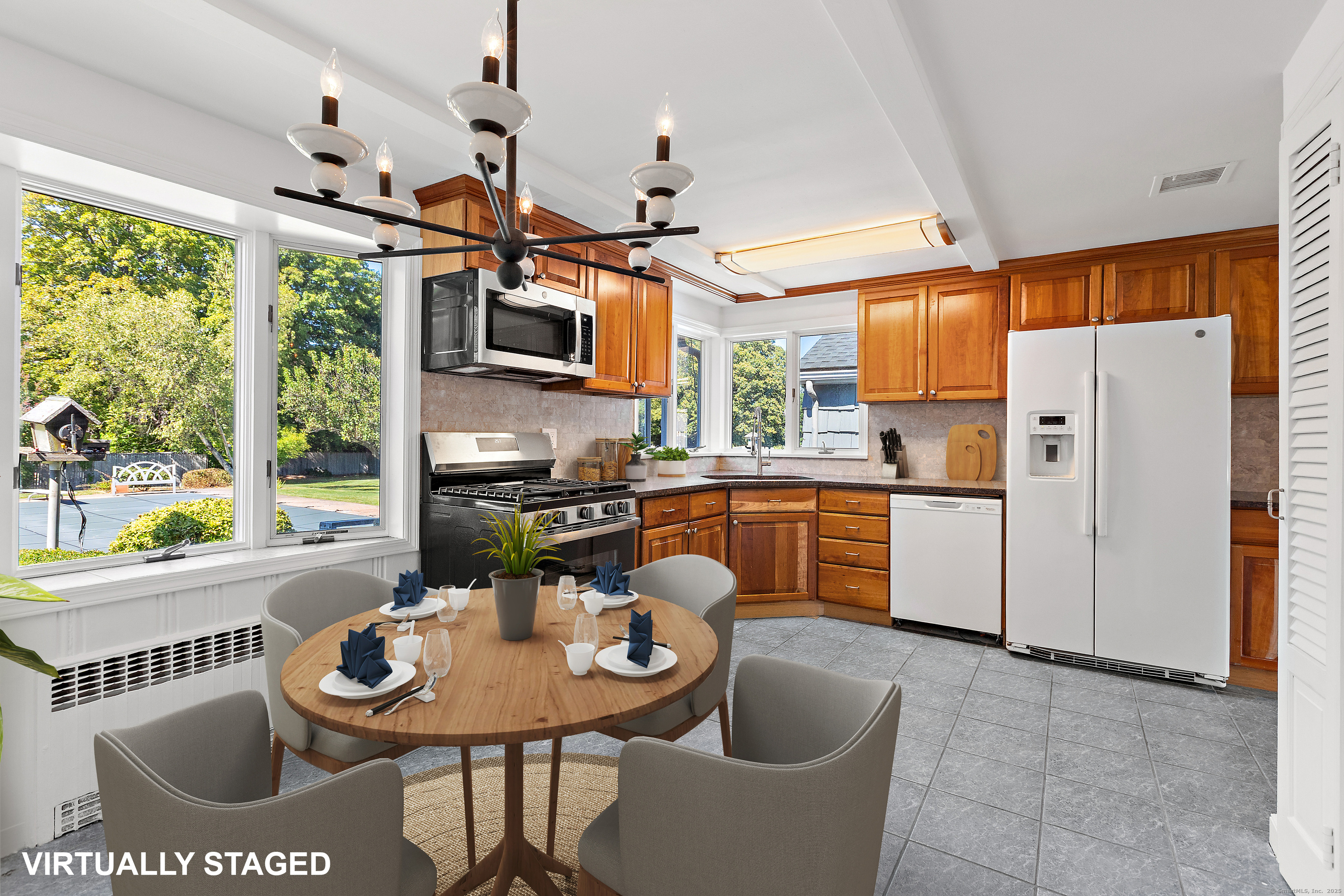 Welcome to this recently updated home located within the desirable King Merritt neighborhood offering both comfort and convenience on a sun-filled one-acre lot. Freshly painted interiors and refinished hardwood floors create a bright, inviting atmosphere throughout. The home's easy one-level layout includes 3 bedrooms and 2 full baths, ideal for seamless living. The primary suite is a private retreat with vaulted ceilings, a cozy fireplace, walk in closet, and sliders leading to a private deck-perfect for morning coffee or evening relaxation. Spacious living and dining areas flow seamlessly, making entertaining effortless. Outside, the large wraparound patio and expansive yard provide ideal spaces for gatherings, play, or simply enjoying the outdoors. This home is ideally located near all that Greenwich has to offer, from dining like Bluebird Taqueria, Luca's, Green & Tonic, Longford's, and Glenville Pizza. Close to parks, private and public schools, The Mill, golfing, the parkway, and Westchester airport. A rare rental opportunity not to be missed! ** pool will not be opened for tenancy