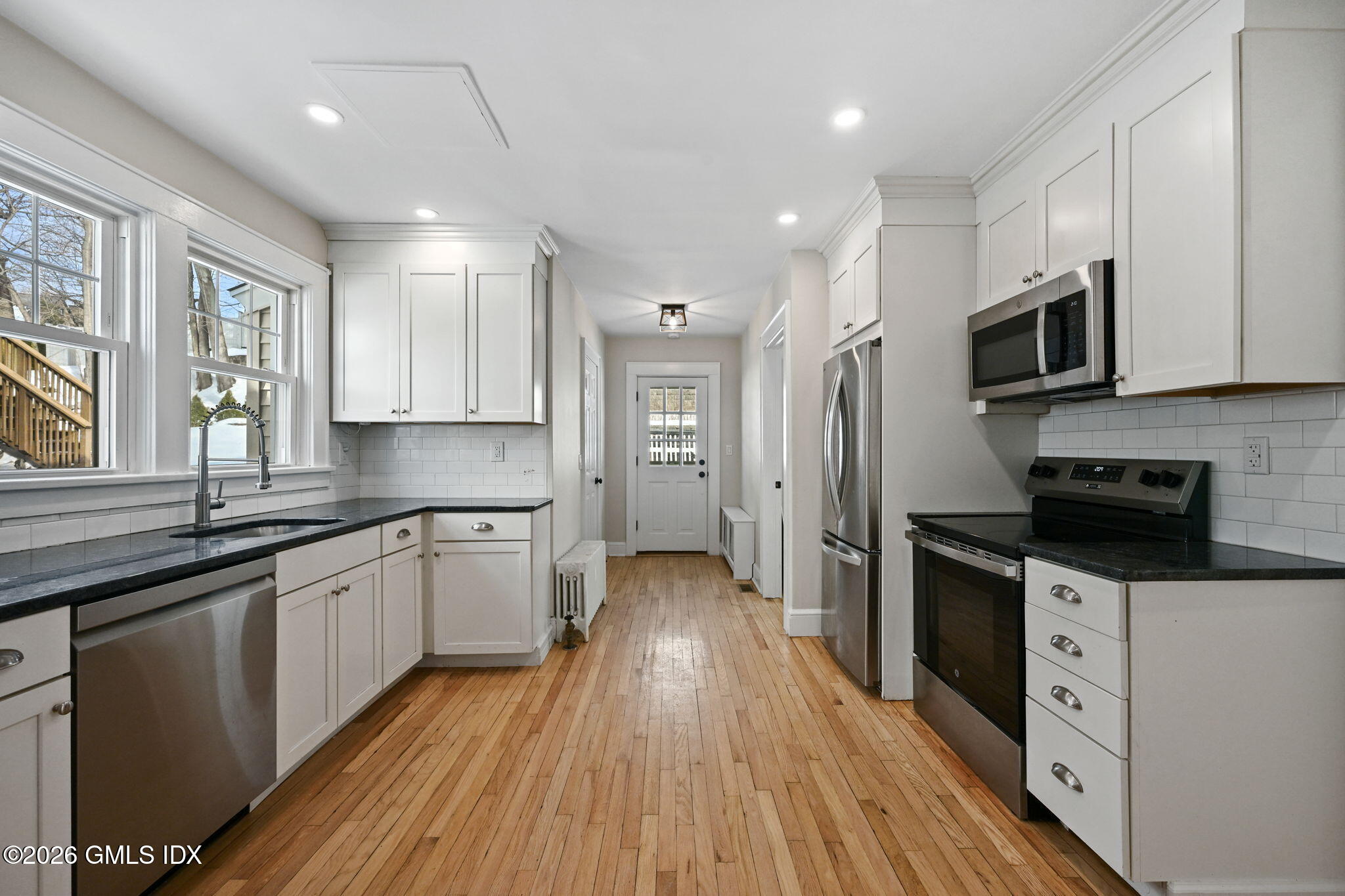 Discover the perfect blend of charm, space, and convenience in this in-town Colonial offering 4+ bedrooms and 2 full baths. The second floor features four generously sized bedrooms, two with private balconies, while the main level provides exceptional flexibility with a possible fifth bedroom and dedicated office space. A finished third-floor bonus area adds even more room for recreation, guests, or a quiet retreat. Ideally located just moments from the Metro-North train, vibrant shopping, and popular restaurants, this home places everyday conveniences at your doorstep. Enjoy direct access to scenic Mead Park right across the street, complete with tranquil water views, and benefit from easy connectivity to the Merritt Parkway for effortless commuting.